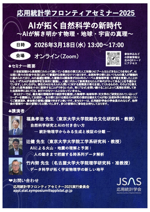 ※本セミナーに関するお問い合わせは、本ホームページ最後に記載されているoffice@applstat.gr.jpでは受け付けておりませんので、ご注意下さい。